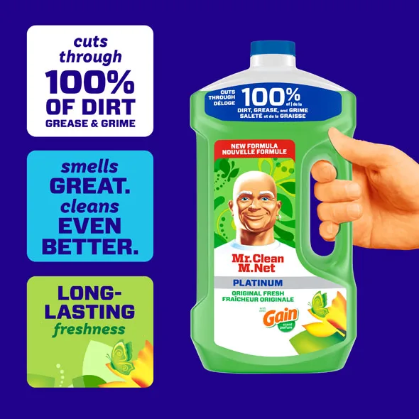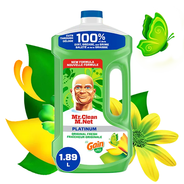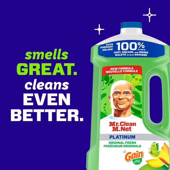 Mr. Clean’s 2X Concentrated All Purpose Cleaner muscles through 100% of dirt and grease for powerful, multi surface cleaning.