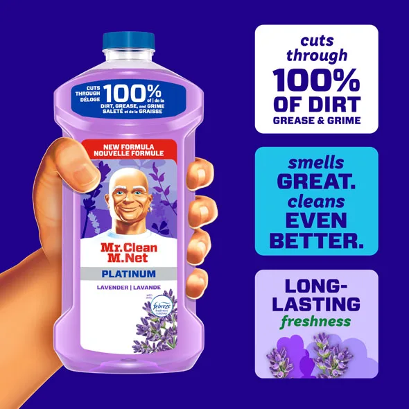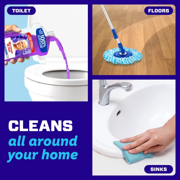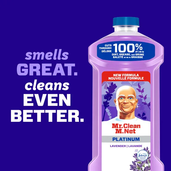 Mr. Clean’s 2X Concentrated All Purpose Cleaner muscles through 100% of dirt and grease for powerful, multi surface cleaning.